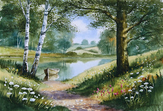 Passeando pelo seu site oficial, encontrei nos "Tutorials" uma aula em PDF da pintura de uma paisagem. Para os iniciantes na aquarela (como eu) é bem útil. Estou colocando o link da página: